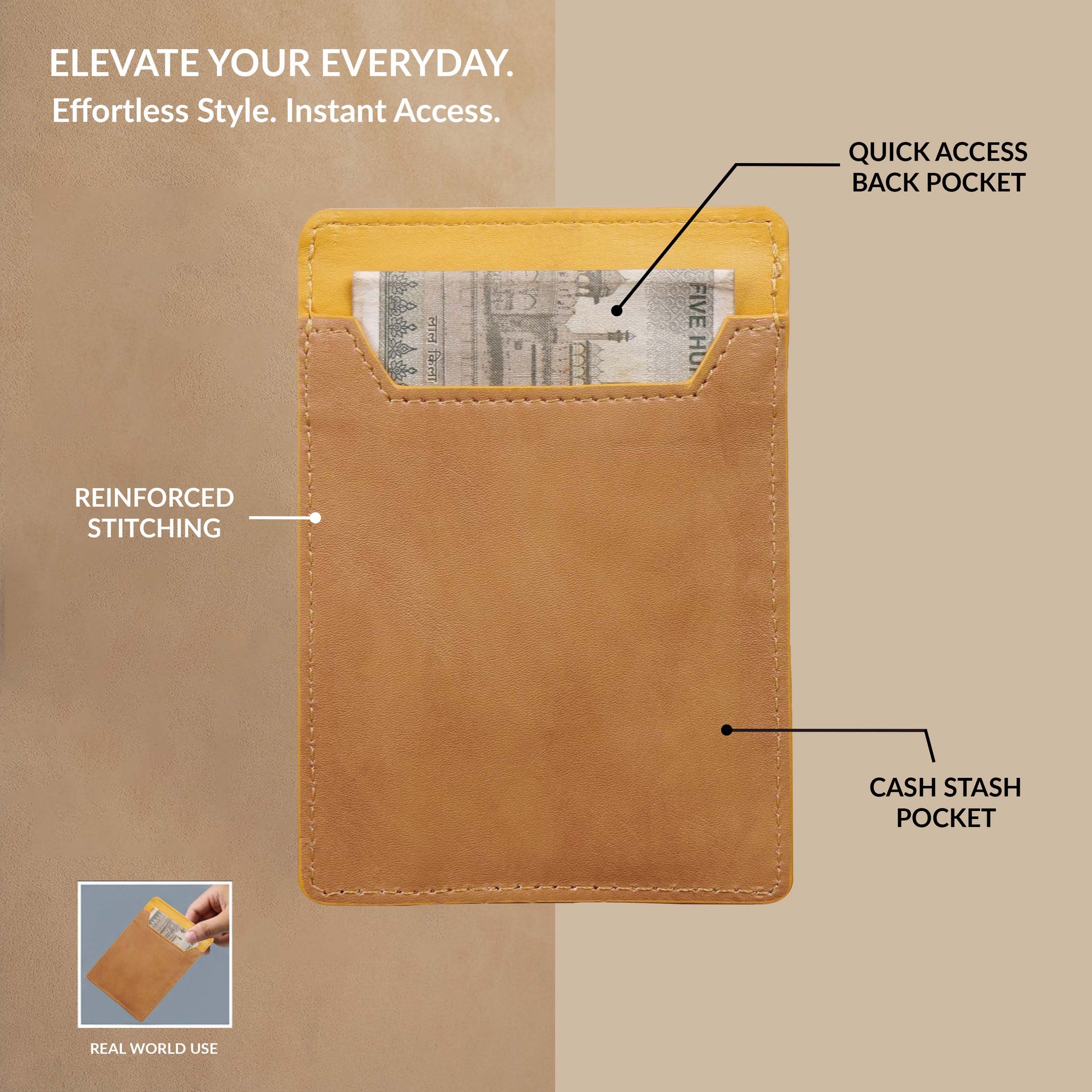Organized Essentials: Crafted in leatherette, it features three card slots, a secure snap button pocket, and a quick-access slip pocket. L – 12 cm, W – 8.5 cm, H – 0.3 cm, Weight - 22 gms. Colour: Beige/Beige